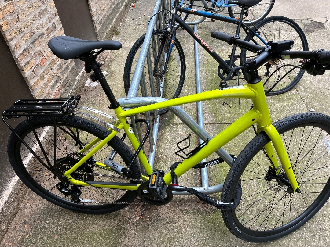 Bike was locked to rack outside of the Ravenswood Metra station around 8:15am and upon returning around 4:45pm it was gone.