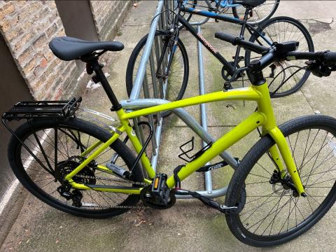 Bike was new with a rear rack, water bottle cage, and phone mount