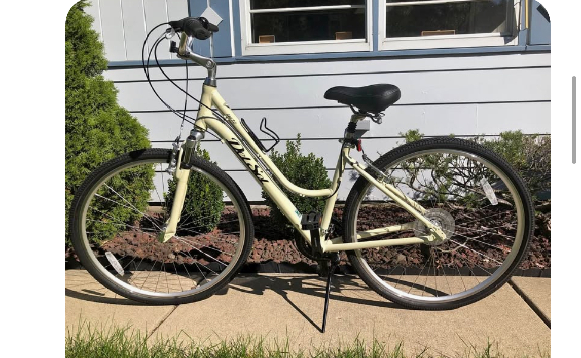 Has “Del Sol” across the frame. also has u lock holder in the middle by the seat. Has basket on rear with light.